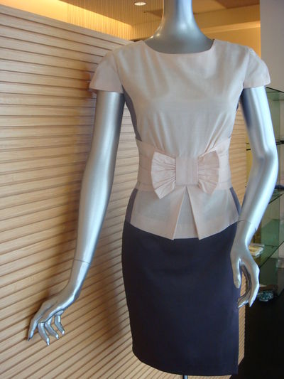 雙色腰間蝴蝶結上衣